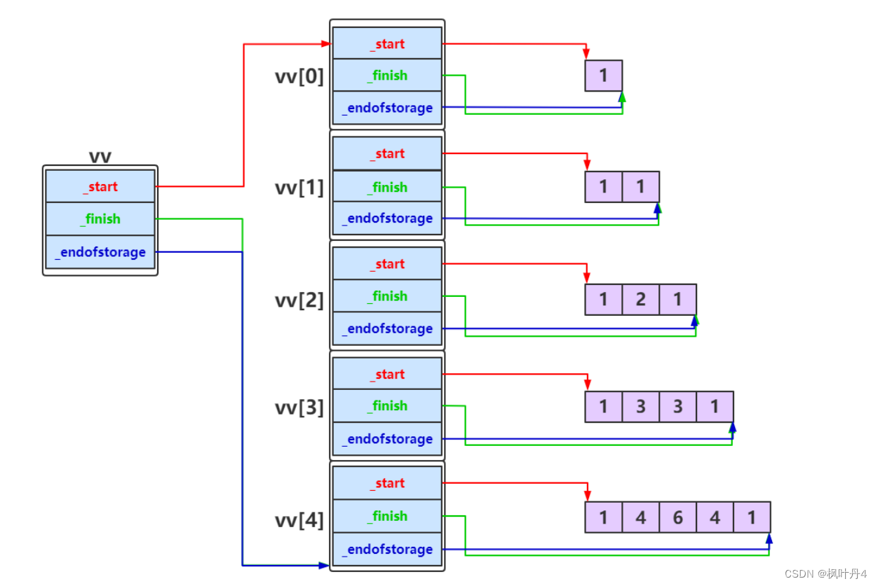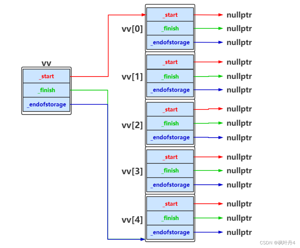 fyd::vector<fyd::vector<int>> vv(n);构造一个vv动态二维数组,vv中总共有n个元素,每个元素都是vector类型的,每行没有包含任何元素。