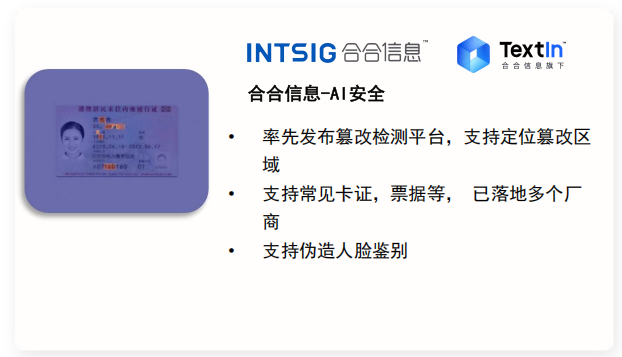 例如,合合信息科技开发的AI内容安全系统,通过结合深度学习技术,提供了多种伪造内容检测解决方案: