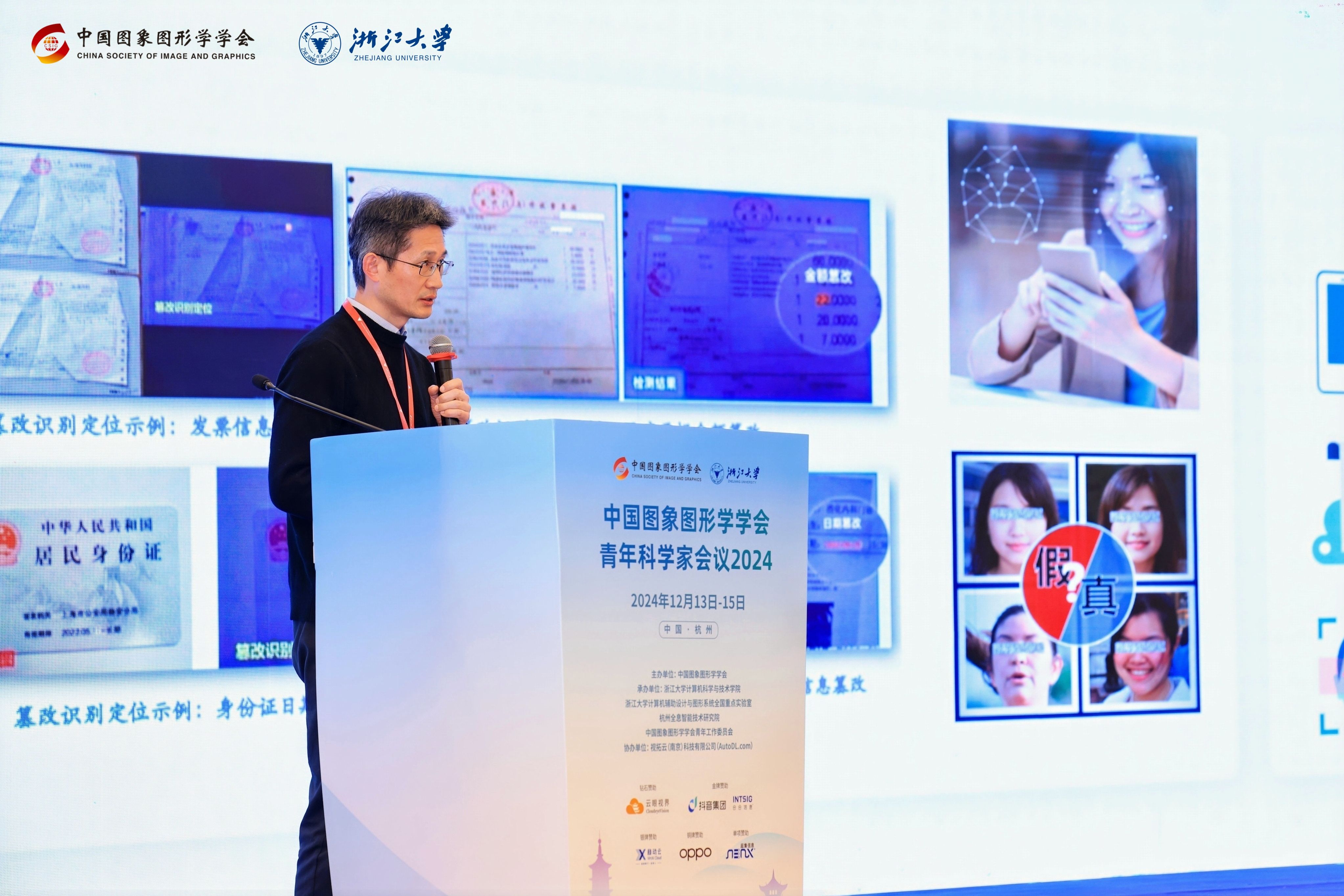 2024年,中国图象图形学学会青年科学家会议上,上海合合信息科技股份有限公司的图像算法研发总监郭丰俊博士围绕“视觉内容安全技术的前沿进展与应用”进行了主题分享。随着人工智能(AI)技术的迅猛发展,尤其是深度学习和生成对抗网络(GANs)等技术的成熟,视觉内容伪造技术日趋复杂和普遍。这使得传统的内容审核和安全防护手段面临前所未有的挑战,如何有效识别和防范视觉内容中的篡改和伪造,成为当前亟待解决的关键问题。