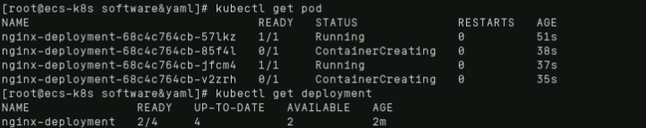kubectl apply -f deployment.yml➤ 步骤 2 通过命令行查看Deployment状态和POD状态。