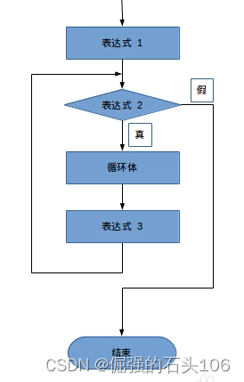 整个循环的过程中,表达式1初始化部分只被执行1次,剩下的就是表达式2、循环语句、表达式3在循环。