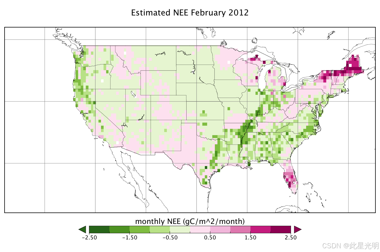 美国大陆地区二氧化碳净生态系统交换(NEE)的第 4 级估算值,空间分辨率为 50 千米