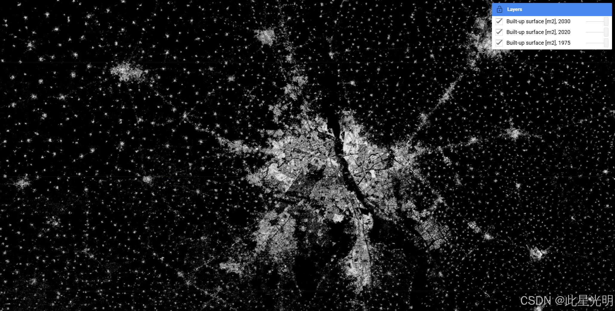 GHSL: 全球1975 年到 2030 年以 5 年间隔建成面积的分布情况(100m)