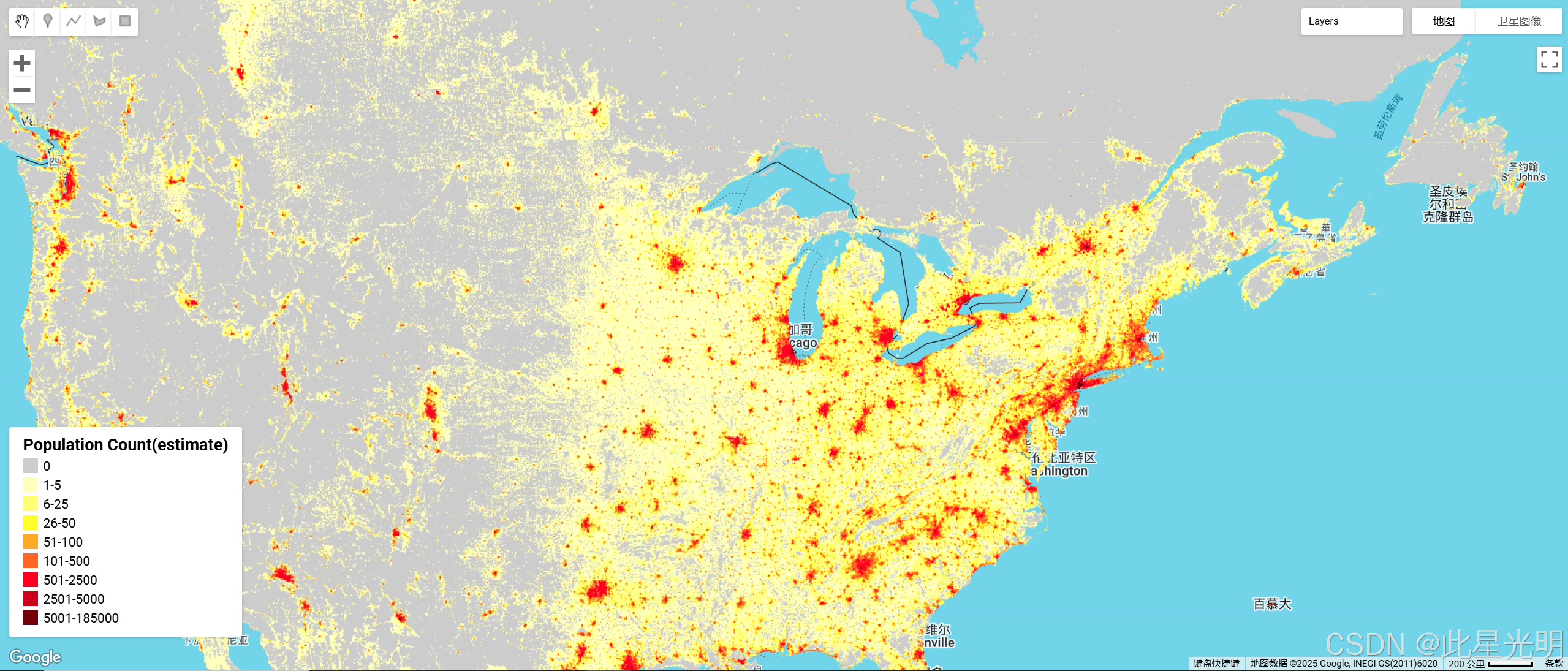 美国橡树岭国家实验室(ORNL)提供的 LandScan 数据集是一个全面的高分辨率全球人口分布数据集,是广泛应用的宝贵资源。 利用最先进的空间建模技术和先进的地理空间数据源,LandScan 以 30 弧秒的分辨率提供了有关人口数量和密度的详细信息,从而能够对全球范围内的人类居住模式进行精确的最新了解。 凭借其准确性和细粒度,LandScan 支持城市规划、灾害响应、流行病学和环境研究等多个领域,成为决策者和研究人员了解和应对全球范围内各种社会和环境挑战的重要工具。