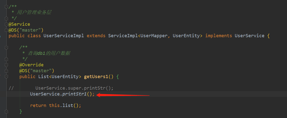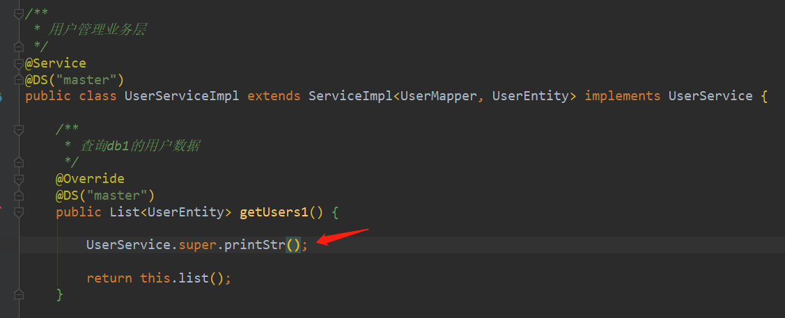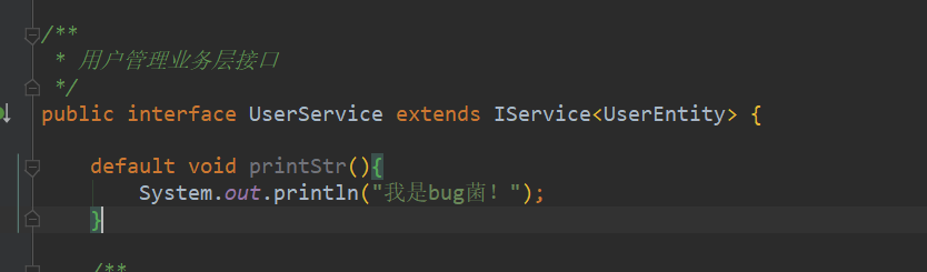 而我在实现类中,完全不需要去重写该printStr()方法,我可以直接通过该接口类.super.方法()即可。