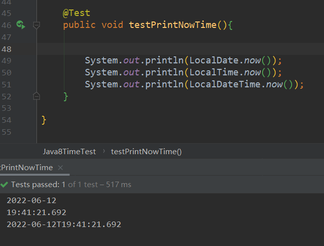 这下你们大家就看明白了嘛,我接下来再将三类获取当前时间分别进行输出,给大家演示一下,其实都是很简单时间类,可能用的比较多的就是LocalDateTime类。