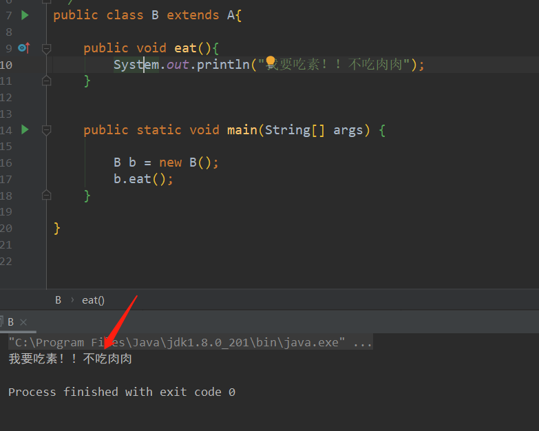 可以看控制台,是不是直接就调用了A类的eat()方法