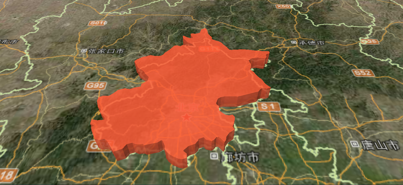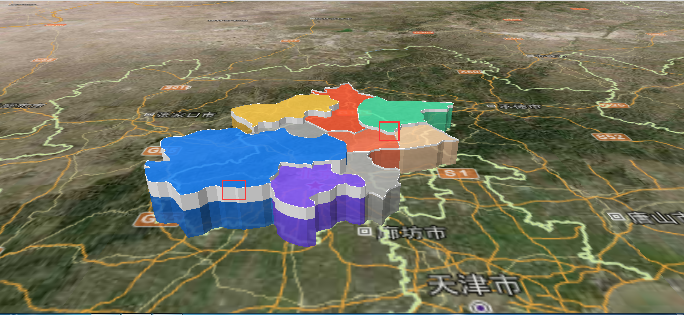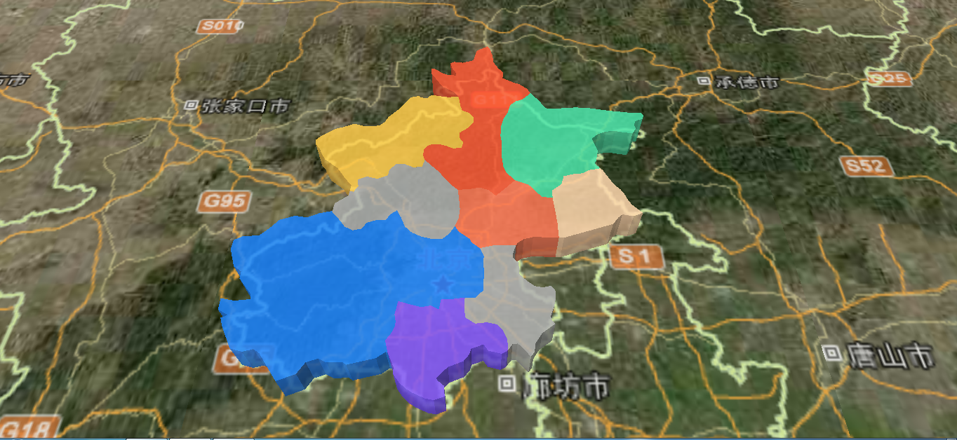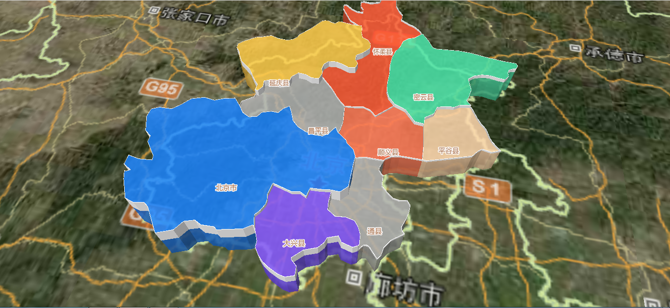 为了模拟各个行政区划的高度不一样,比如各区域的人口密度展示,我们会展示不同的高度,同时将行政区划的边界更加明显的展示出来。首先实现动态高度展示: