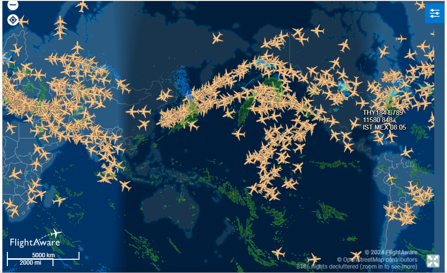 上述是一张全球实时航班轨迹系统的截图,, 这里就很好行的表达了此时飞机的飞行情况。通过飞机实时位置的跟踪,掌握飞机的运行状态。本文以模拟实现上述场景为例,重点讲解在Leaflet当中,如何实现飞机的航线展示,同时在不同的时刻可以展示其飞行方向。