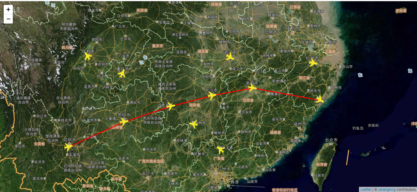 以上就是本文的主要内容,本文以模拟实现上述场景为例,重点讲解在Leaflet当中,如何实现飞机的航线展示,同时在不同的时刻可以展示其飞行方向。行文仓促,难免有不足之处,欢迎各位专家朋友批评指正。