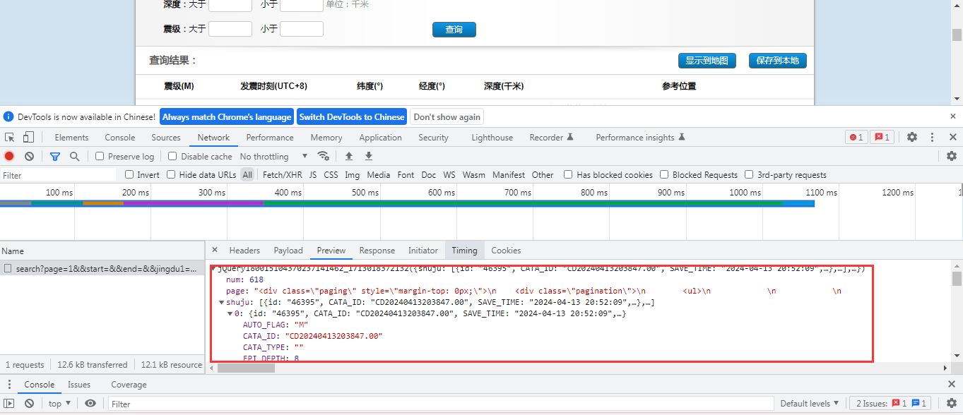 这就是地震信息,我们如果想要得到这信息,也就是根据接口把相应的历史信息取到即可。下面来看一下系统是怎么获取到这些信息的。