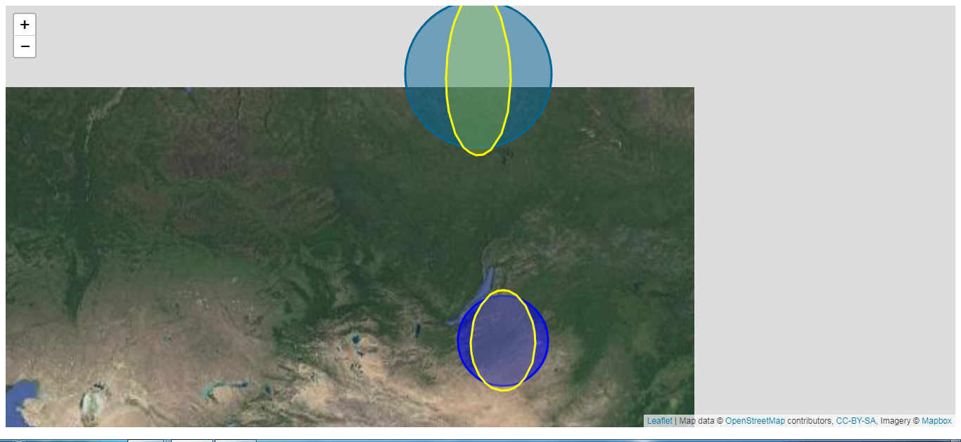 来看一下经过自主模拟的圆生成的图形叠加到地图后,在高纬度的效果是怎么样的?