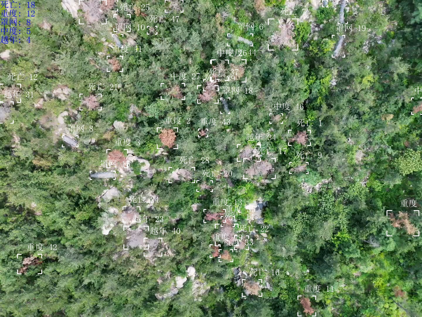 目前针对松材线虫病检测的场景,已经支持对9种疫木的实时识别。