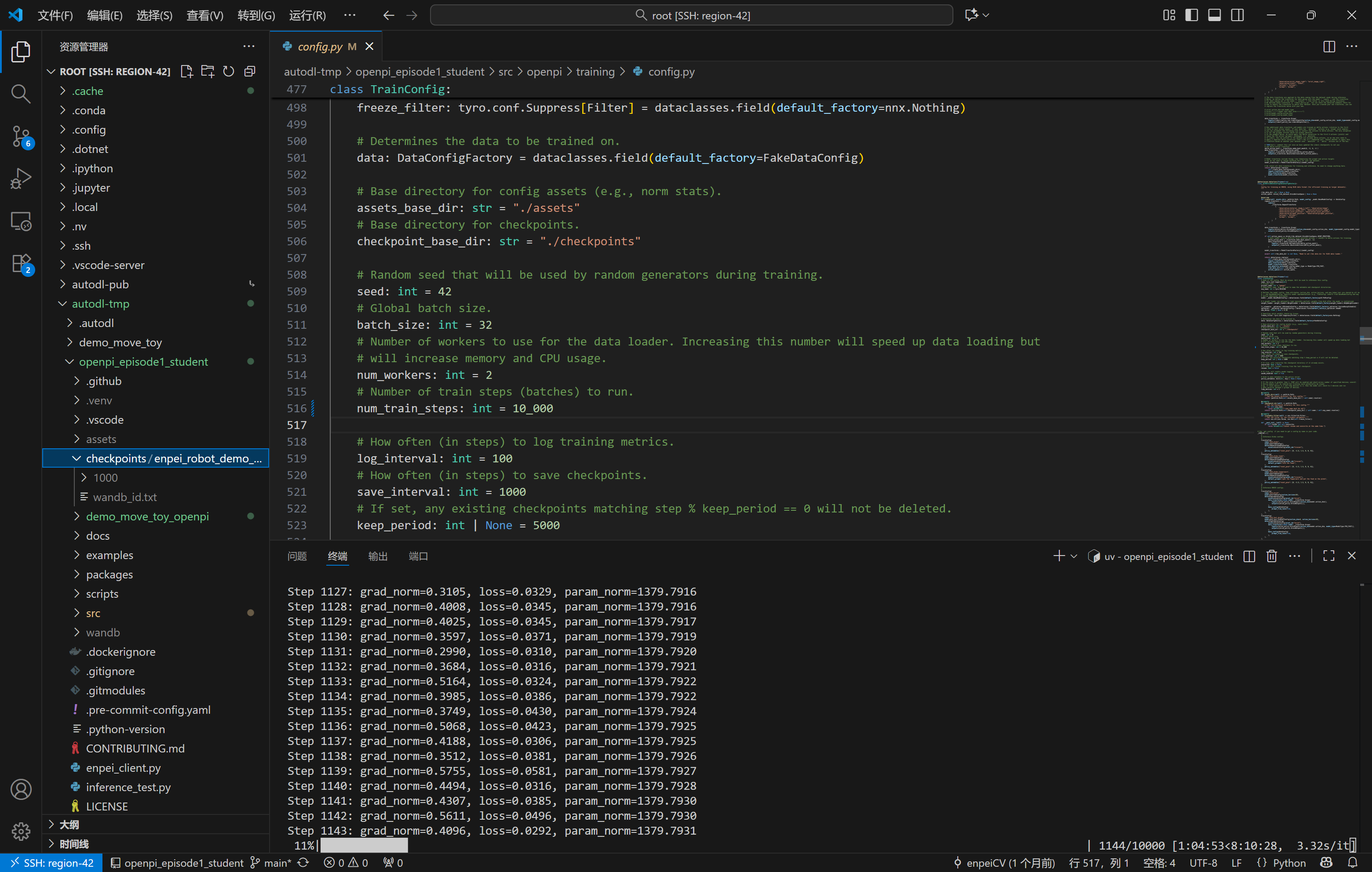 以下是我的配置文件,为了节省训练时间num_train_steps设置为10_000: