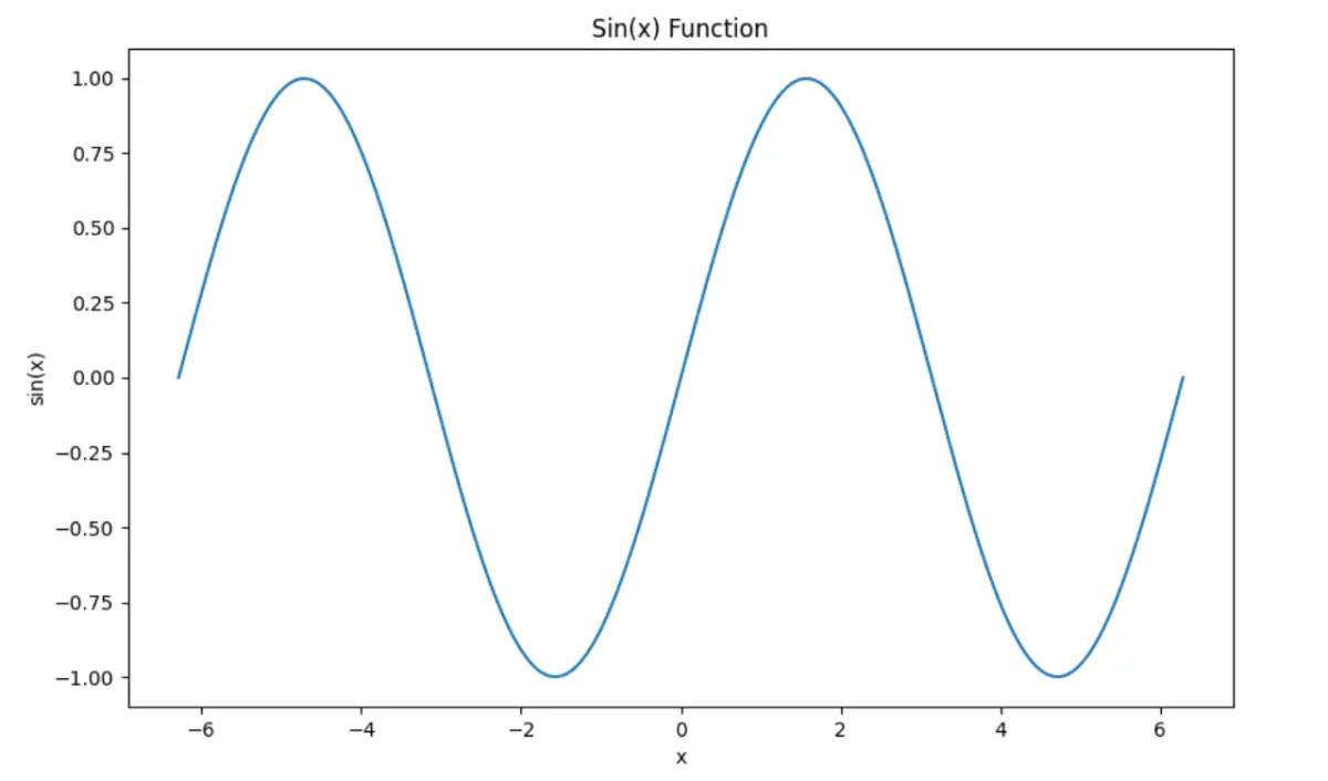 请注意,这段代码假设你已经安装了 matplotlib 和 numpy 库。这段代码会生成一个名为 sinx_function.png 的文件,你可以使用任何图片查看器软件来打开它。如果你使用的是 Jupyter notebook 或类似的环境,plt.show() 会直接在你的 notebook 中显示图像,而无需使用外部图片查看器。