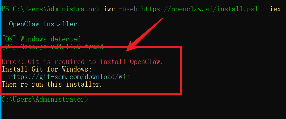 否则你安装OpenClaw的时候可能就会出现类似于这样的错误~