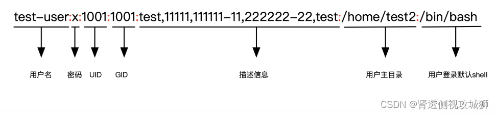 例如,假设 /etc/passwd 文件中其中一行信息如下: