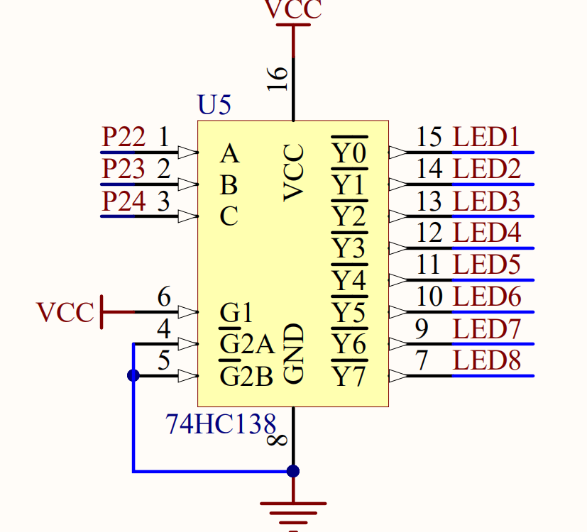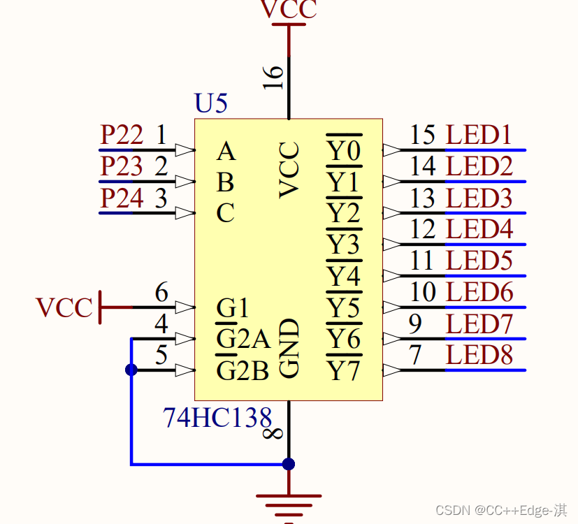 74HC138译码器(这个74貌似已经停产了!)来个简称这个74其实可以叫做三八译码器