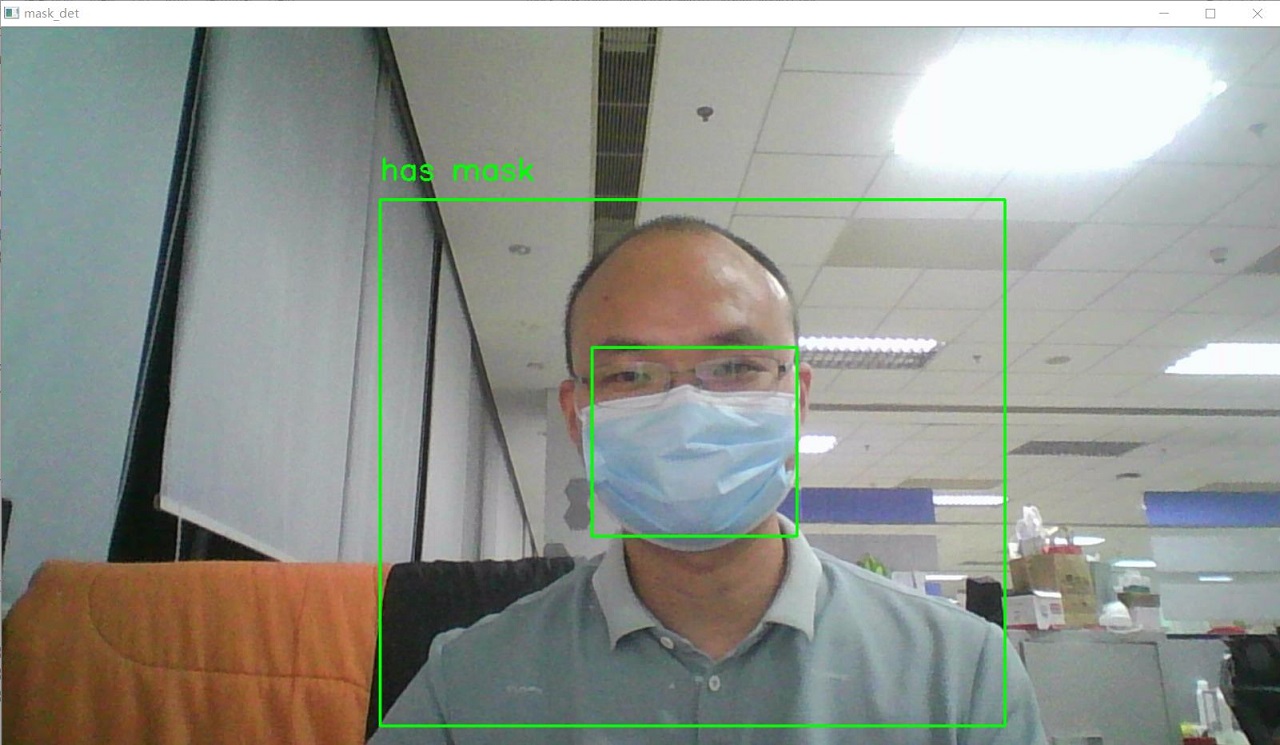 点击“确定”,稍后将会自动弹出实时的口罩检测画面: