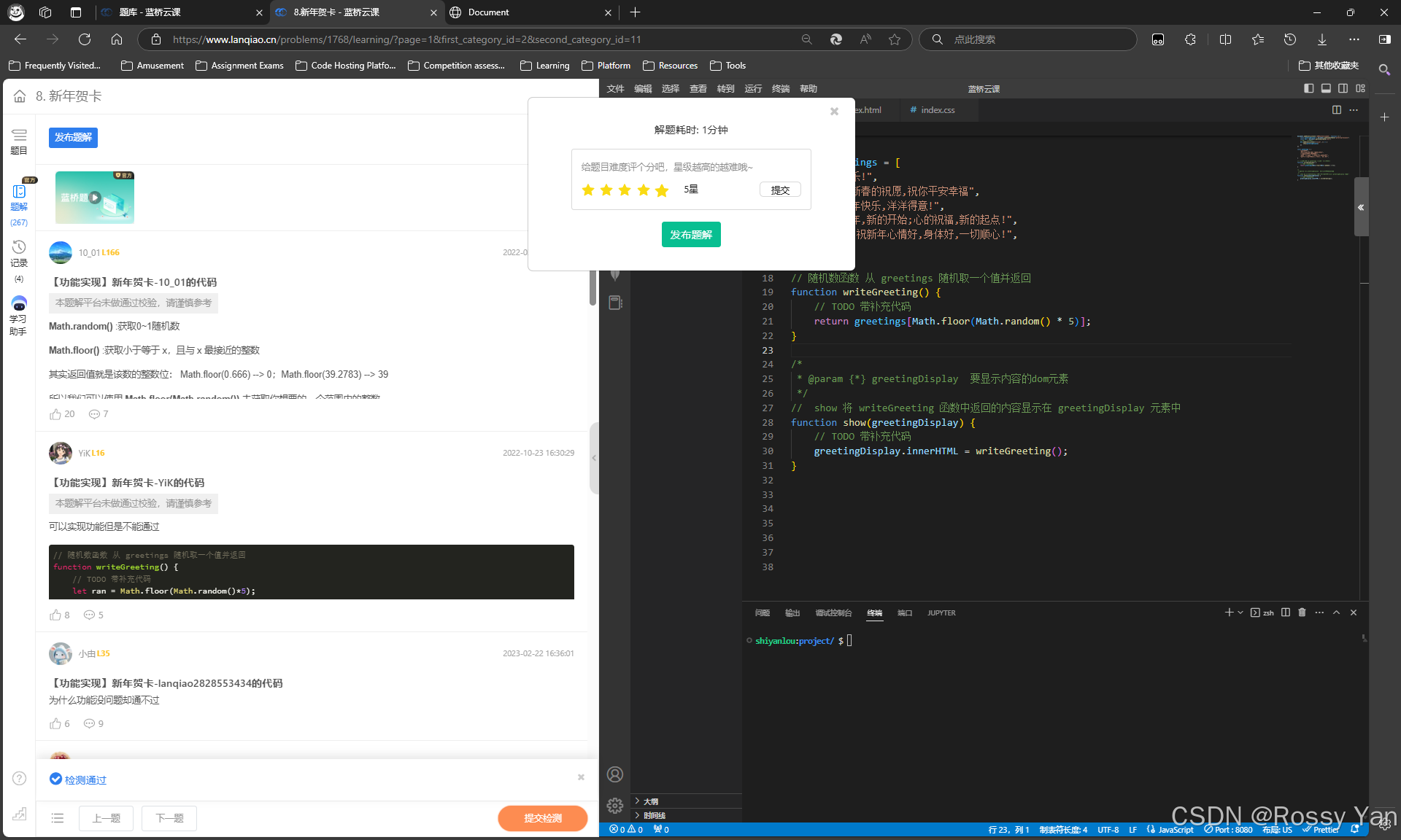 index.js样式文件中的 TODO 部分,点击书写贺卡,卡片随机展示已经写好的祝福语: