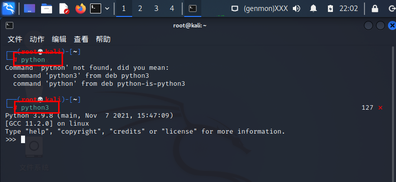 我kali上有多个python,然后输入python后显示不了版本,然后输入(对应版本)python3