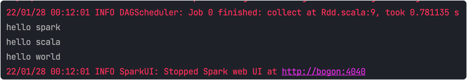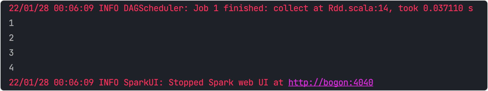 和第二节提到的读取文件,统计有多少行是一样的。如果Windows系统执行如下代码出现问题,可回顾一下第二节去Spark Shell创建。