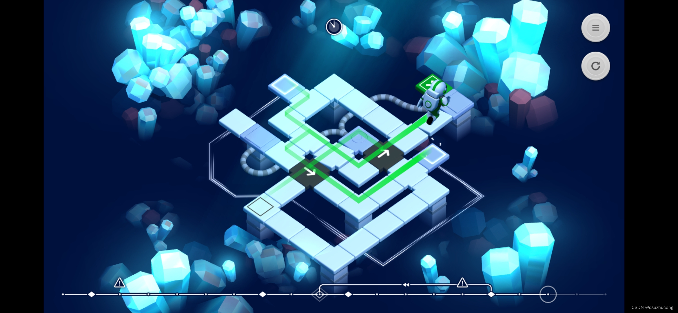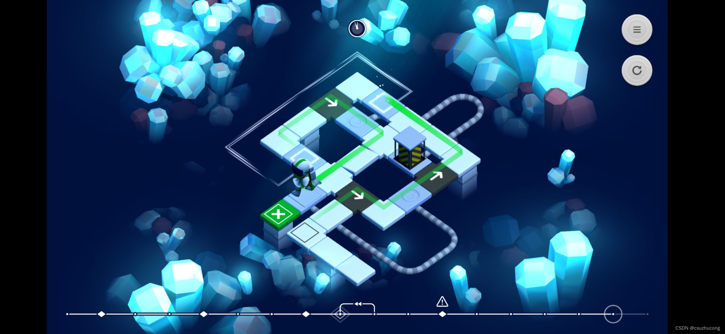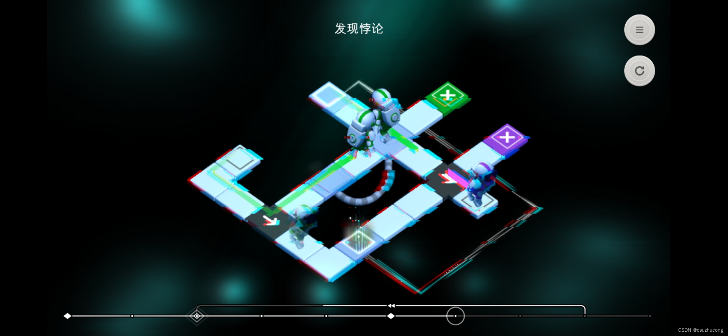 关卡操作虽然可以自由前进后退,但是实际上状态并不能完全回退(即不符合马尔科夫效应),虫洞会记录产生二重身的触发条件,并把时间往前推移,推移到菱形处。