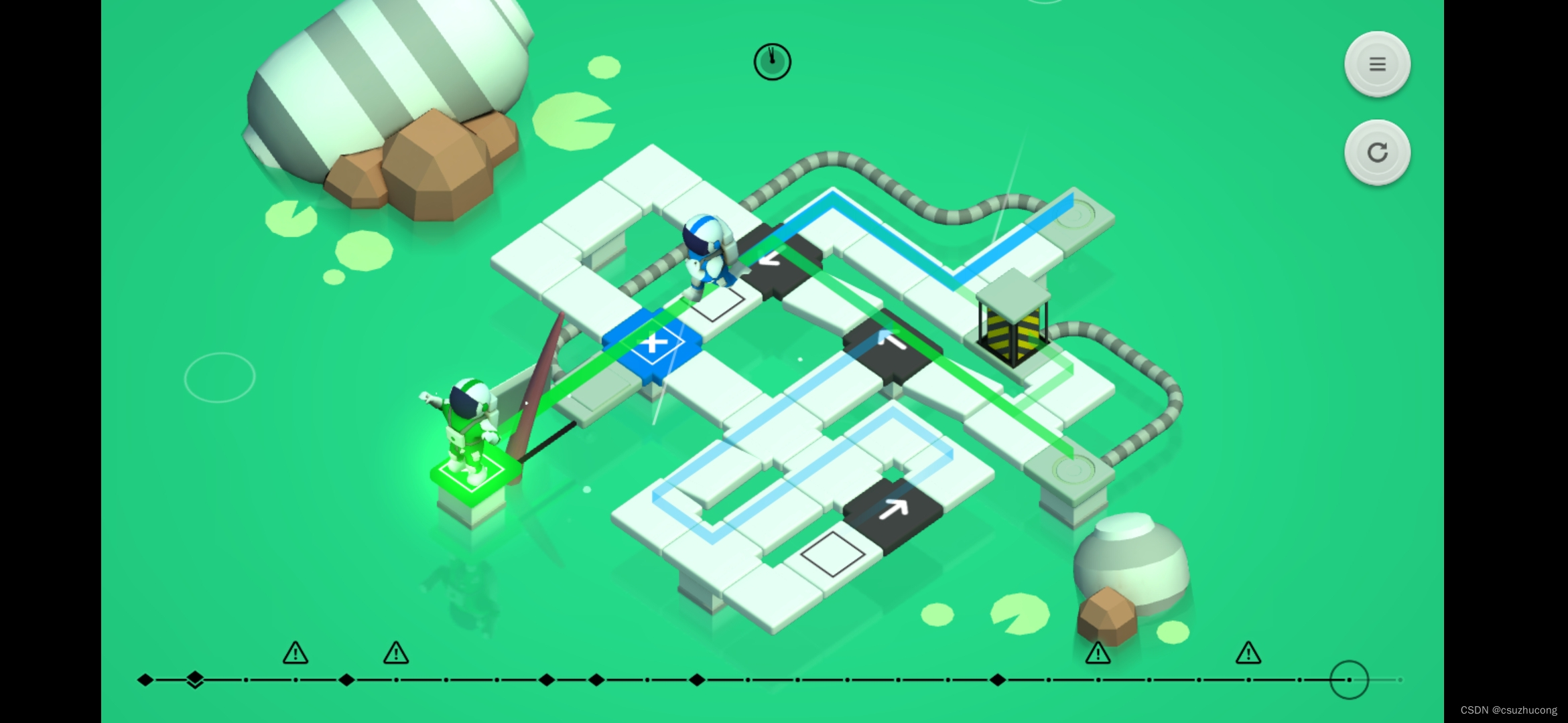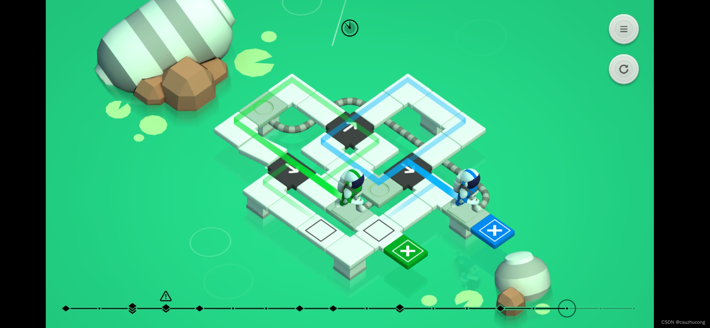 障碍物阻挡路线,需要踩机关才能消除障碍物。