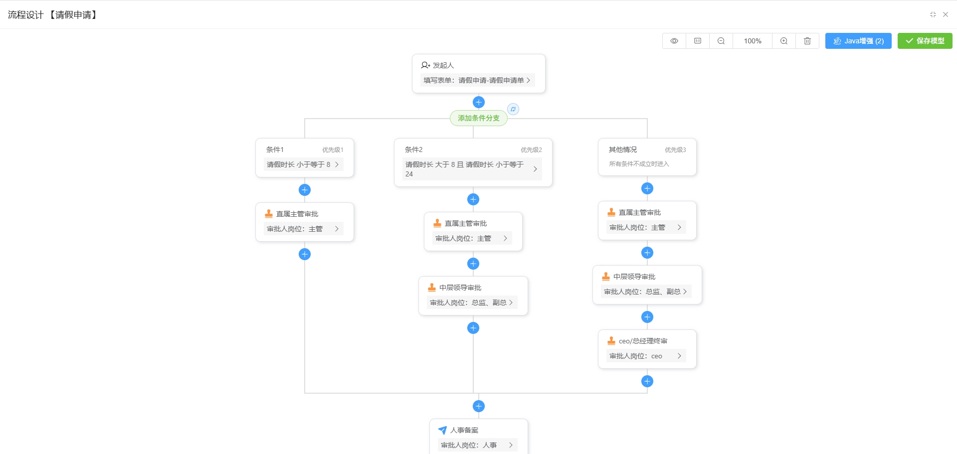 - 规则引擎集成:提供动态解析与执行接口,实现业务逻辑的实时配置,如审批条件、分支决策等。