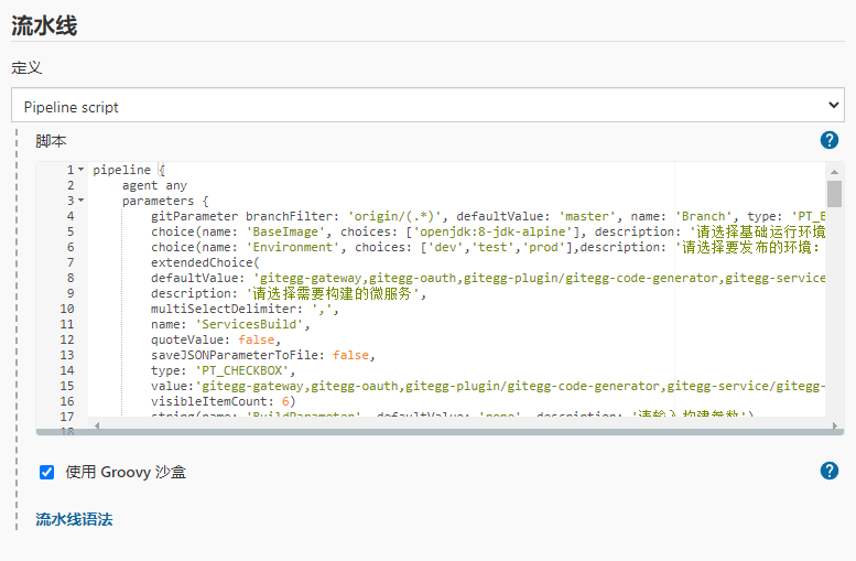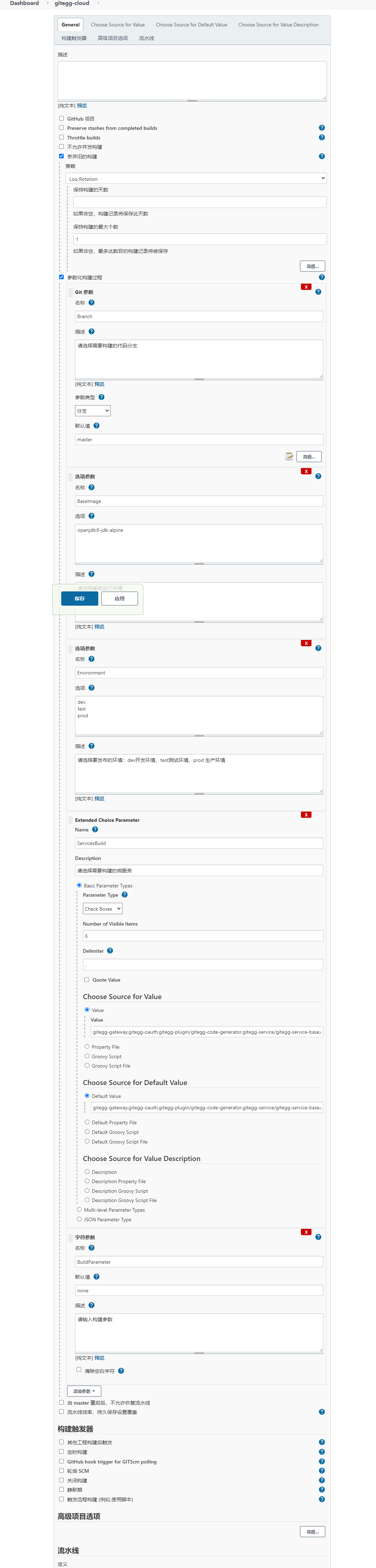 choice(name: 'BaseImage', choices: ['openjdk:8-jdk-alpine'], description: '请选择基础运行环境')