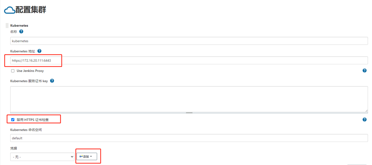 配置Kubernetes plugin插件,Jenkins --> 系统管理 --> 节点管理 --> Configure Clouds --> Add a new cloud -> Kubernetes