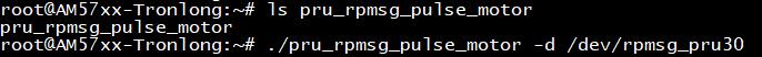 执行如下命令,将PRU固件pru_rpmsg_pulse_motor.out加载至pru1_0核。