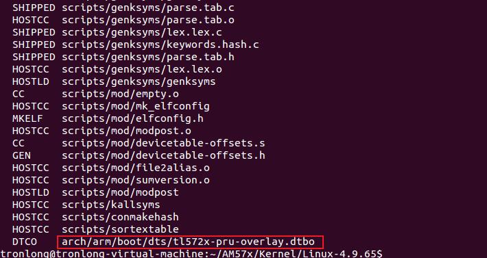 Host# make ARCH=arm CROSS_COMPILE=arm-linux-gnueabihf- tl572x-pru-overlay.dtbo