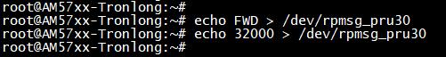 Target# echo FWD > /dev/rpmsg_pru30 //电机顺时针正向转动