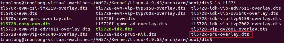 将本案例image目录下的tl572x-pru-overlay.dts文件,拷贝至Ubuntu内核源码的"arch/arm/boot/dts/"目录下。