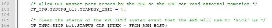 允许PRU访问OCP主端口,以便PRU可读取外部存储器;清除PRU系统事件状态。