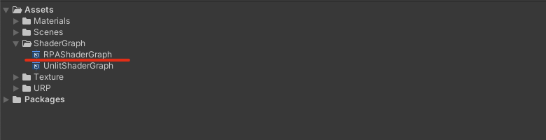 这里提供一个快捷创建材质球的方法,鼠标选中我们保存的“RPAShaderGraph”文件,然后右键创建材质球,这样我们创建出来的材质球,就自动使用这个Shader了。