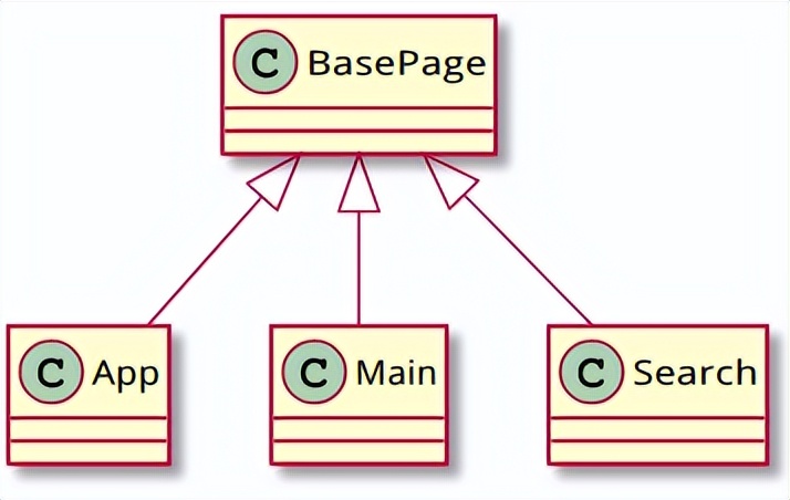 PageObjetct 的模块关系如下,所有的模块要继承 BasePage , App 实现启动,重启,停止等操作, Main 实现进入搜索页,进入股票页等操作: