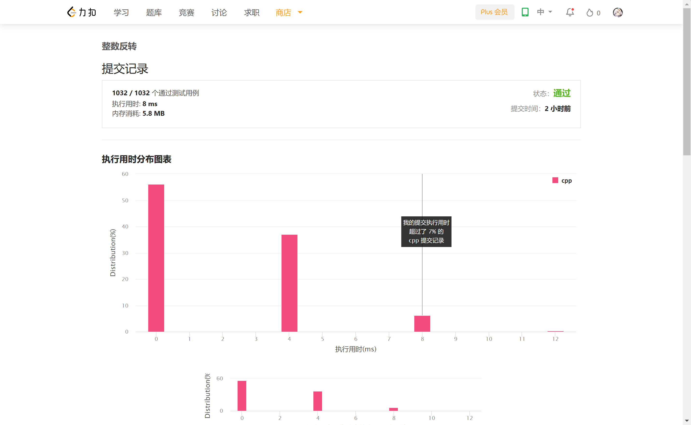 执行用时:0 ms, 在所有 C++ 提交中击败了100.00%的用户