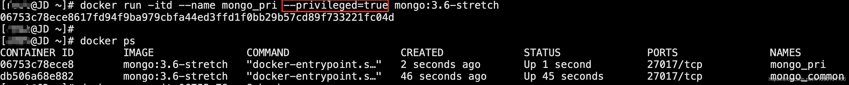 1. docker run -itd --name mongo_sock -v /var/run/docker.sock:/var/run/docker.sock mongo:3.6-stretch创建容器并进行挂载