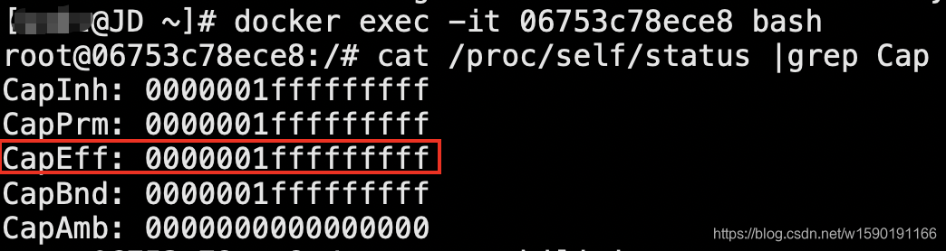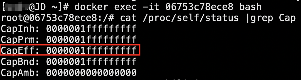 -  查看容器内进程的capability grep CapEff /proc/self/status 在其他机器上执行capsh --decode=value查看具体权限,value为前一个命令输出结果