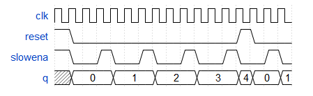 也就是计数不仅由时钟控制,还需要判断计数使能是否有效,在这里就是slowena,下面就设计一个计数器技术从0到9,且计数由使能控制。
