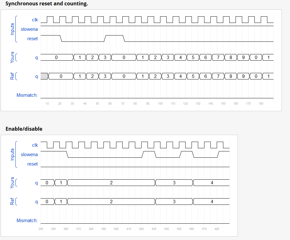 - the 4-bit binary counter (count4) below, which has Enable and synchronous parallel-load inputs (load has higher priority than enable). The count4 module is provided to you. Instantiate it in your circuit.