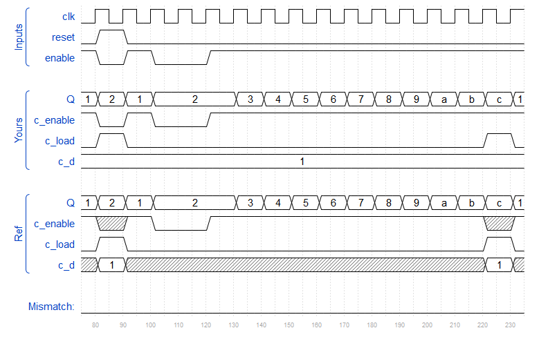 这个计数器的功能是实现从1到12的计数,因此,如果复位reset有效,则计数复位为1,我们需要做的不是自己设计一个计数器,而是需要例化题目给的一个计数器,题目给的计数器需要有一个输入信号为load信号,我们需要产生一个load信号给予它,何时给予load信号有效呢?