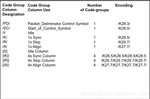 最后提醒一下,如果在Serial Transceiver收到的数据包的包起始控制符号之前有一个8位数据7c,它表示的是包界定符,K28.3,它通常在包起始控制符号开头以及包结束控制符号开头。