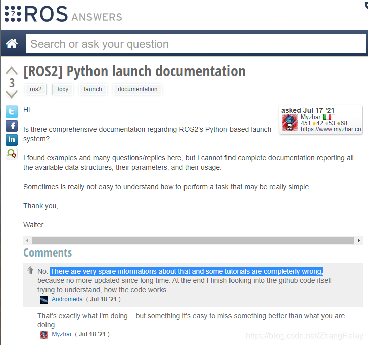 热乎乎的ROS Answers,注意提问时间和回答标出部分,搏一搏?