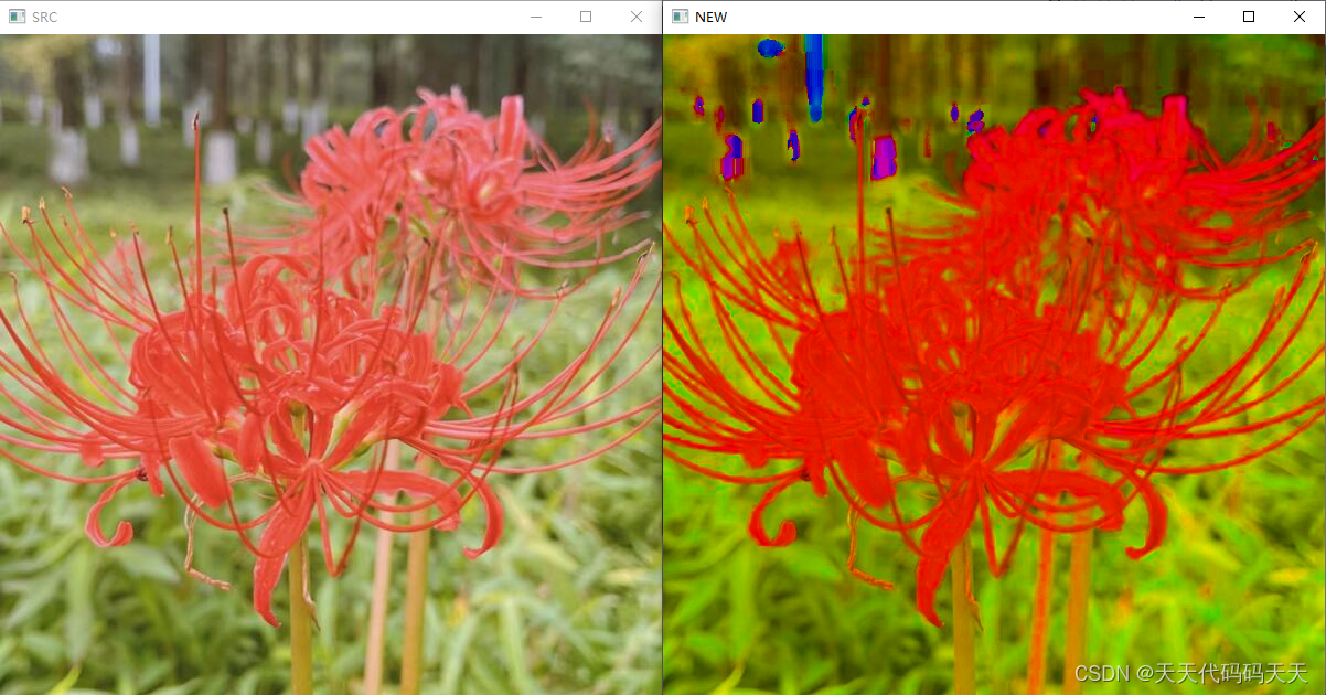 如果让H通道和V通道的值保持不变,只把S通道的值调整为255,代码如下: