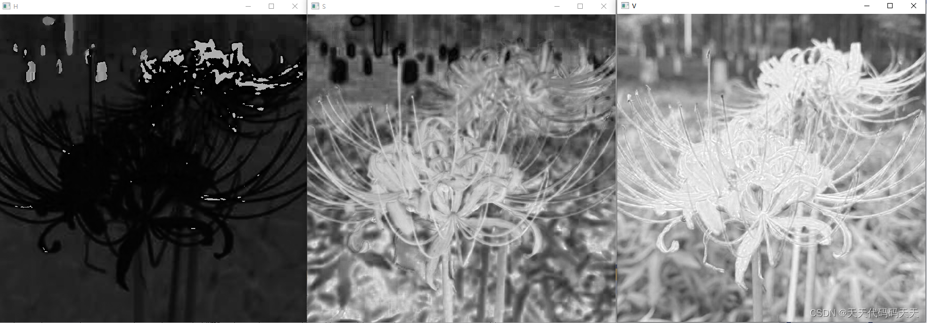 在HSV色彩空间,如果保持其中两个通道的值不变,调整第3个通道的值,可以得到相应的艺术效果。