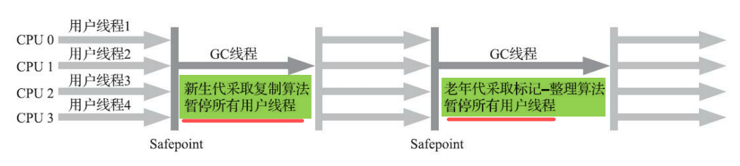 对于这种垃圾收集器,进行垃圾回收时出现的“Stop The World”,它暂停所有用户线程的行为显然是不可接受的,但是在HotSpot虚拟机设计之初,也是无奈之举,原书中给出的解释如下: