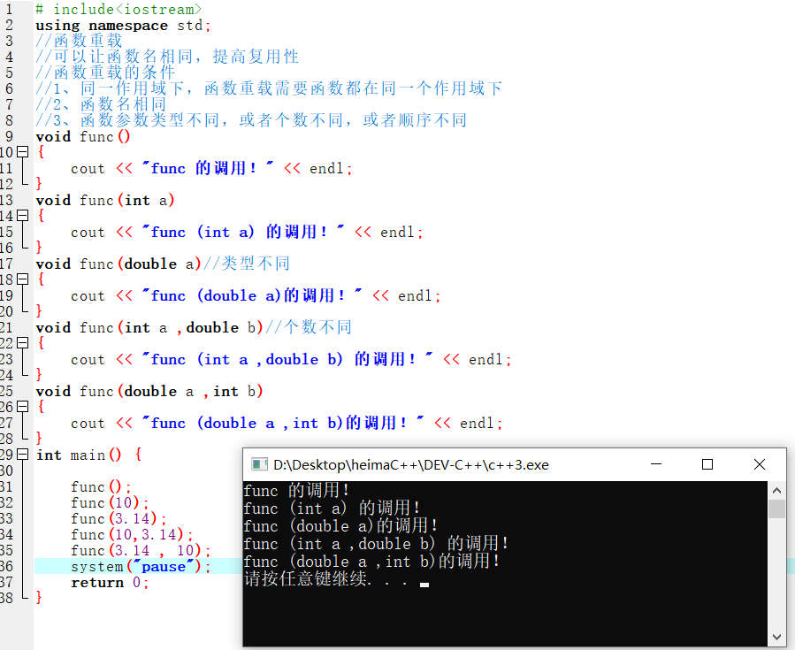 cout << "func (int a ,double b) 的调用!" << endl;